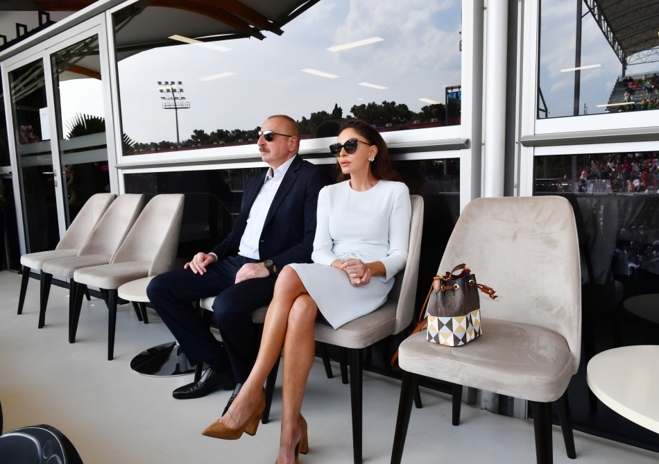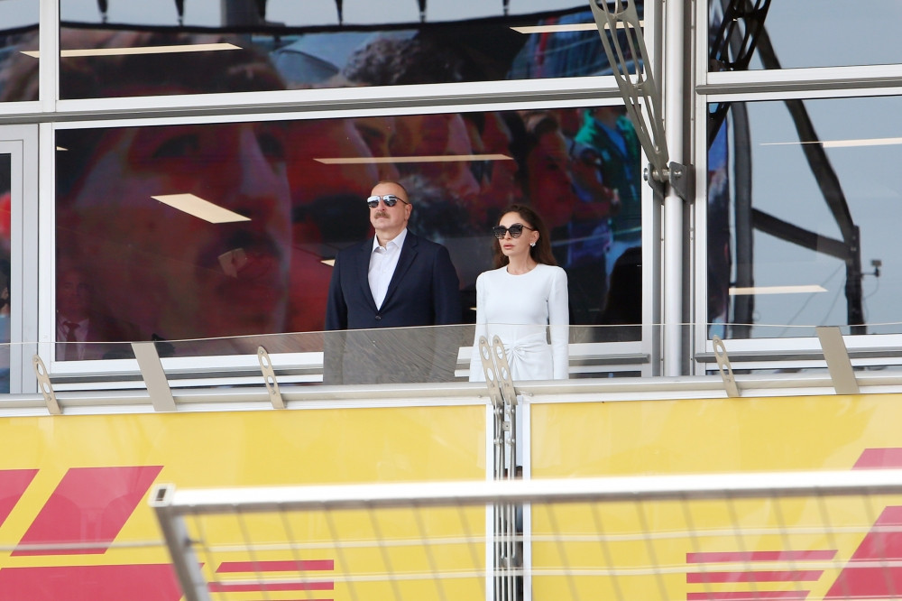 Lent.az xəbər verir ki, Azərbaycan Respublikasının Prezidenti İlham Əliyev, birinci xanım Mehriban Əliyeva və ailə üzvləri yarışa baxırlar.