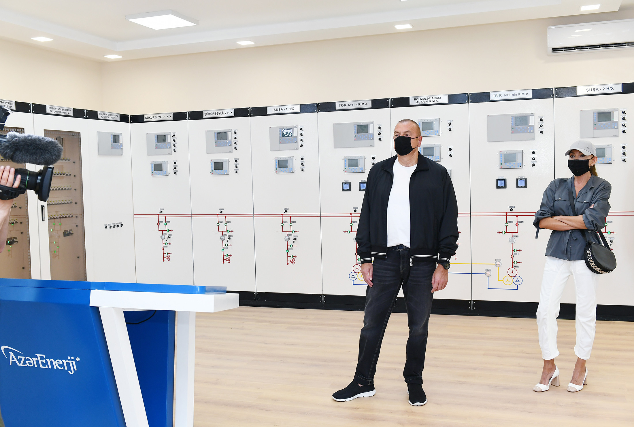 Sonra Prezident İlham Əliyev yenidən qurulan 110/35/10 kilovoltluq “Şükürbəyli” yarımstansiyasının da məsafədən idarə olunan SCADA dispetçer sistemi vasitəsilə açılışını etdi.
