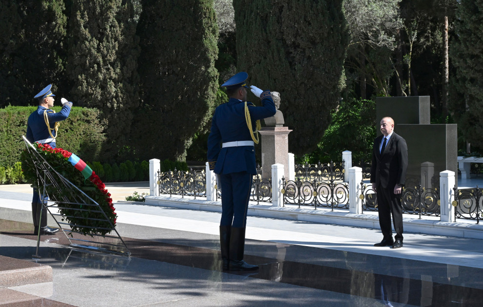 Prezident İlham Əliyev Ümummilli Lider Heydər Əliyevin məzarı önünə əklil qoydu, Ulu Öndərin xatirəsini ehtiramla anıb.