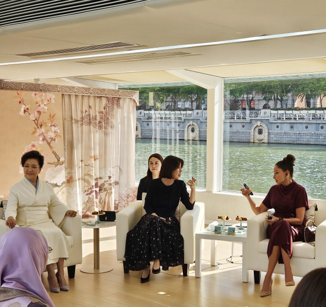 Azərbaycan Respublikasının Birinci xanımı Mehriban Əliyeva və qızı Arzu Əliyeva sentyabrın 1-də Çinin Tiencin şəhərində Çin Xalq Respublikasının birinci xanımı Pen Liyuan və “Şanxay Əməkdaşlıq Təşkilatı plyus” formatında keçirilən görüşdə iştirak edən dövlət və hökumət başçılarının xanımları ilə birlikdə Hayha çayında gəmi gəzintisində iştirak ediblər.