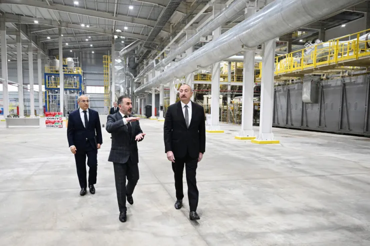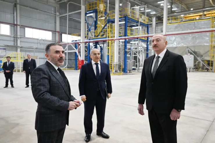 Dövlət başçısı zavodu işə salıb.