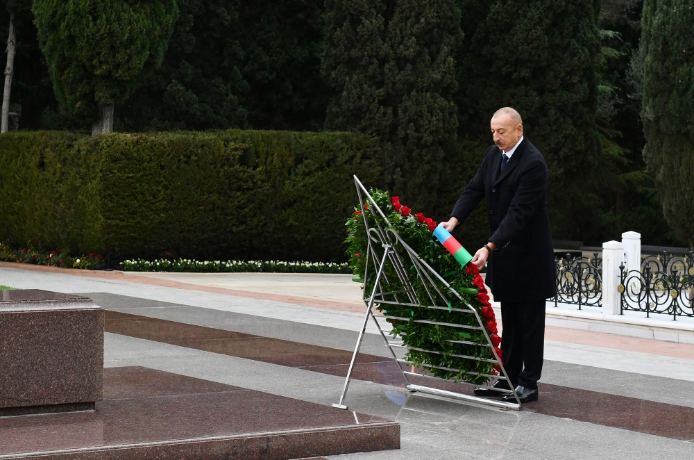 Prezident İlham Əliyev Ulu Öndərin məzarı önünə əklil qoydu.