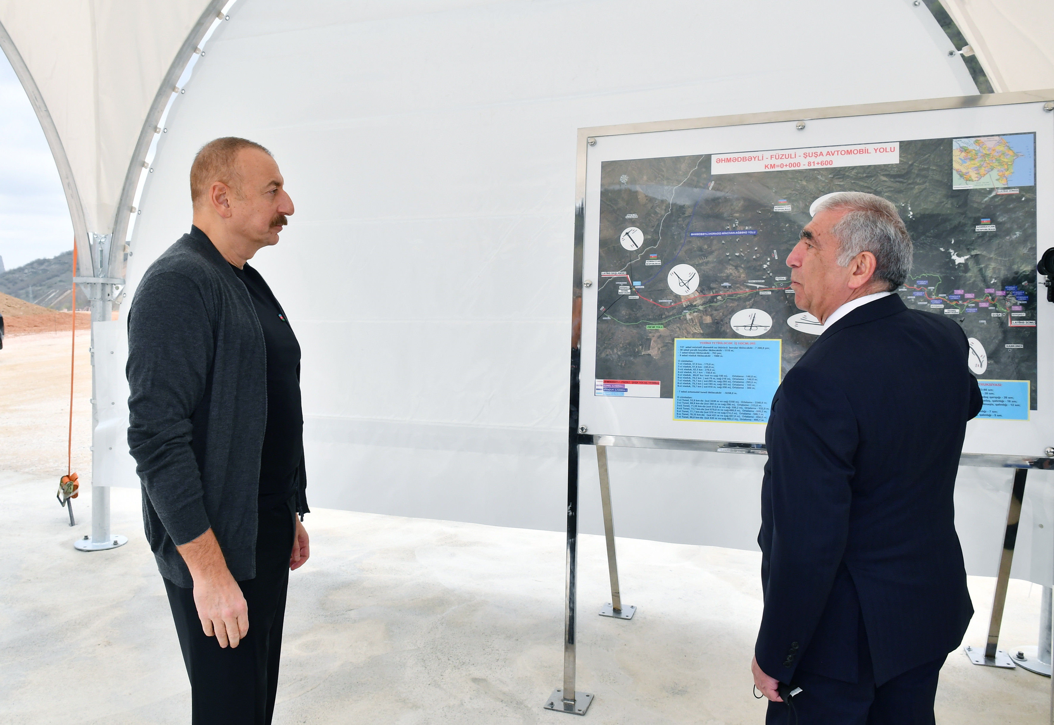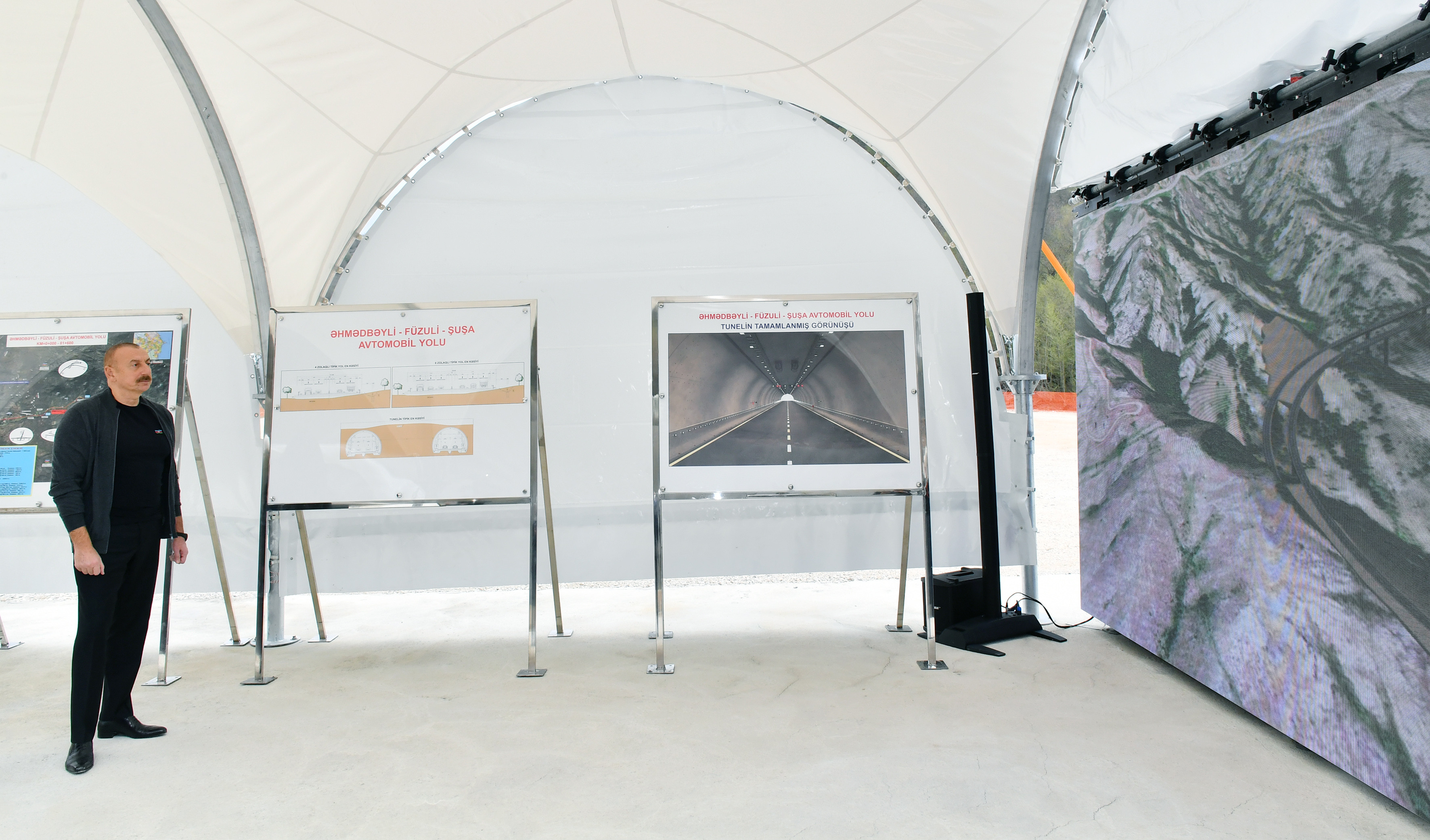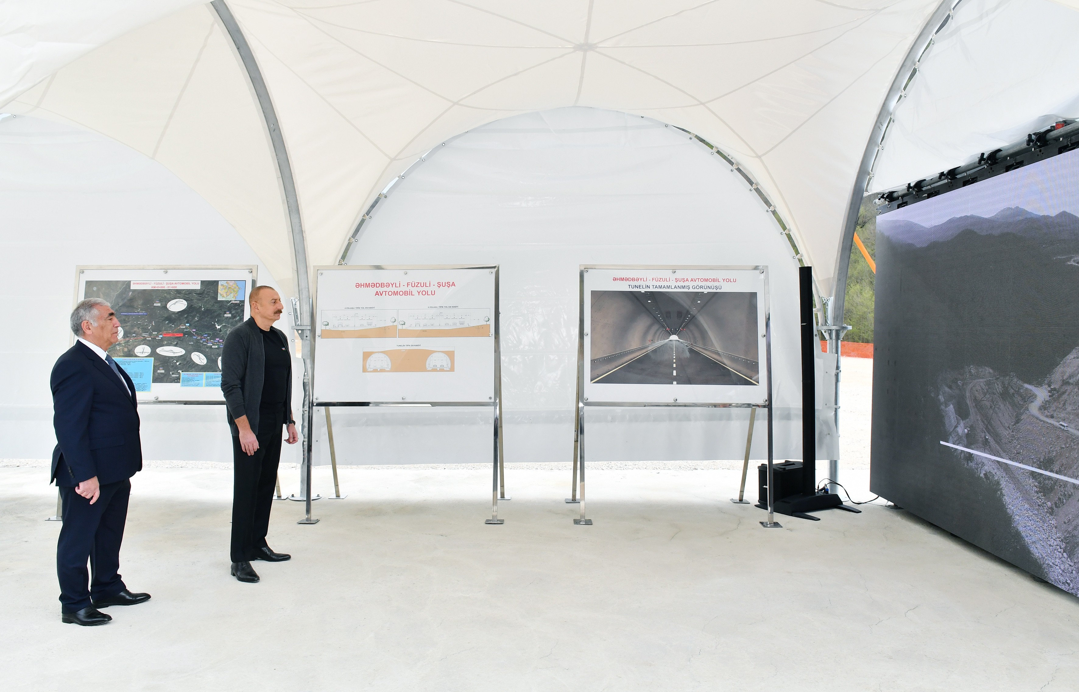 Sonra dövlətimizin başçısı Şuşa rayonunun Daşaltı kəndində Əhmədbəyli-Füzuli-Şuşa avtomobil yolunun və bu yolun üzərindəki tunellərin inşası ilə tanış oldu.