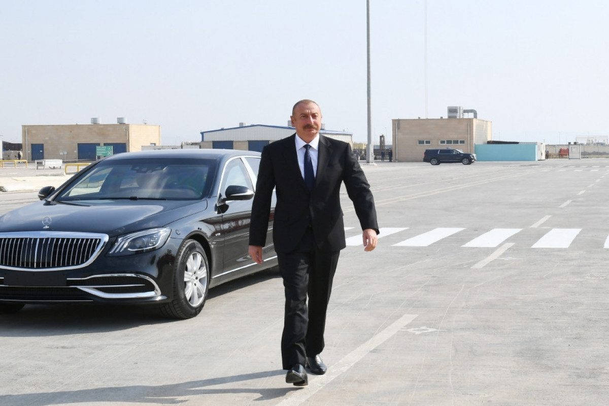 Dövlətimizin başçısı tankerin istifadəyə verilməsini bildirən rəmzi lenti kəsdi.