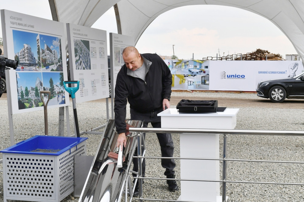 Sonra Prezident İlham Əliyev və birinci xanım Mehriban Əliyeva Ağdam Muğam Mərkəzinin, Ağdam şəhərində salınacaq 2-ci və 3-cü yaşayış məhəllələrinin, Ağdam şəhərində inzibati binanın təməlini qoyublar.