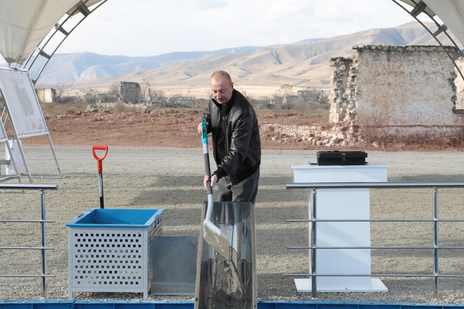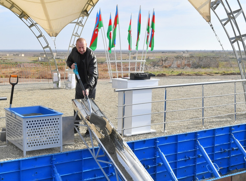 Prezident İlham Əliyev və birinci xanım Mehriban Əliyeva Ağdam şəhərində salınacaq beşinci, dördüncü yaşayış komplekslərinin təməlinin qoyulması mərasimində iştirak ediblər. Dövlət başçısı Ağdam rayonunun Qiyaslı, Salahlı Kəngərli və Baş Qərvənd kəndlərinin təməlini qoyub.