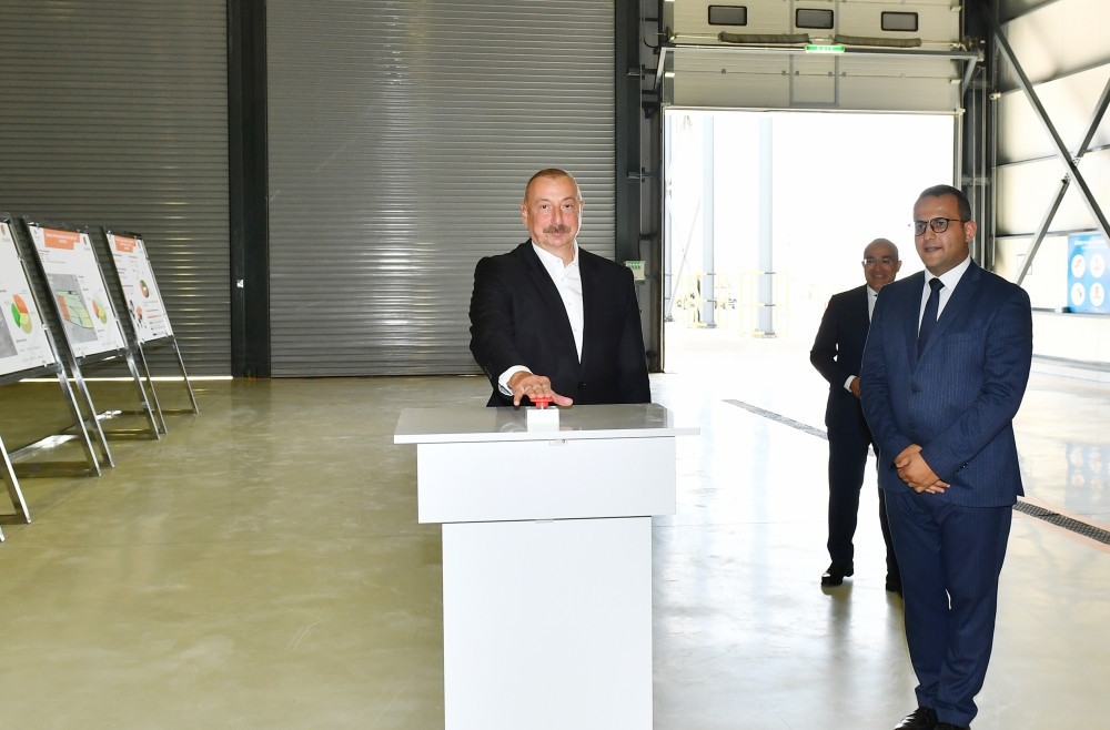 Dövlət başçısı İlham Əliyev zavodu işə saldı.