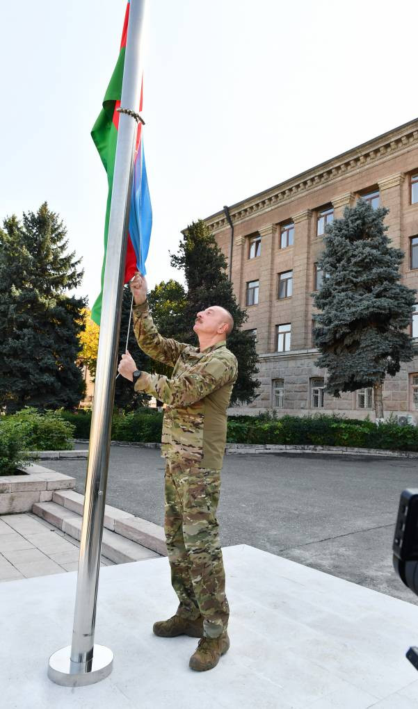 Azərbaycan Respublikasının Prezidenti İlham Əliyev oktyabrın 15-də Xankəndi şəhərində Azərbaycan Respublikasının Dövlət Bayrağını ucaldıb və çıxış edib.