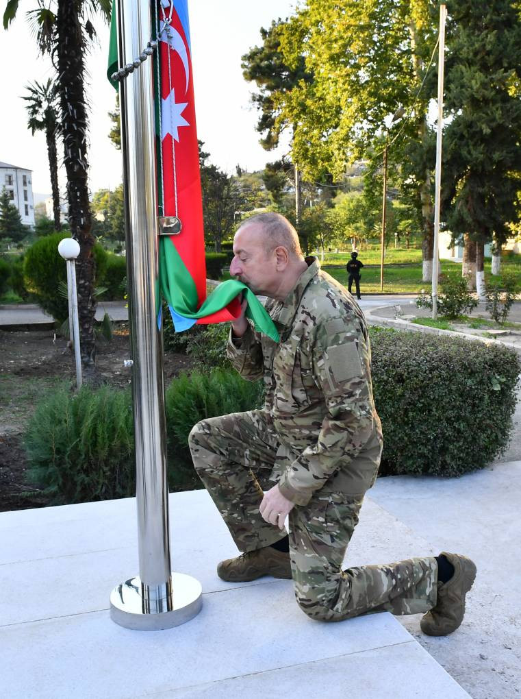 Prezident İlham Əliyev oktyabrın 15-də Xocavənd şəhərində Azərbaycanın Dövlət Bayrağını ucaldıb.