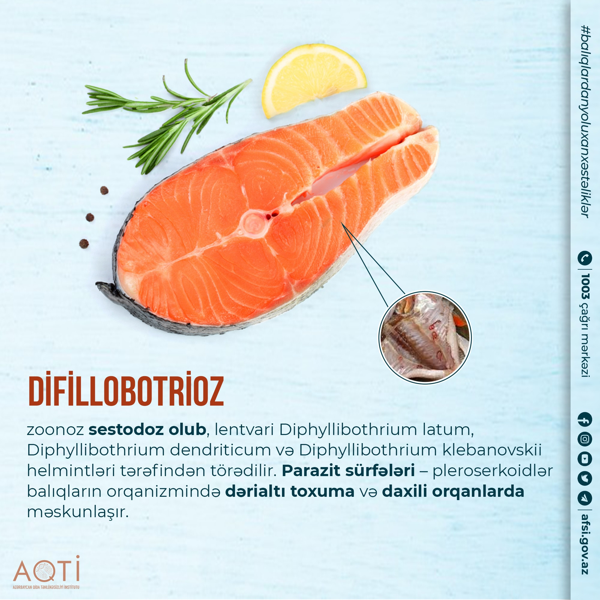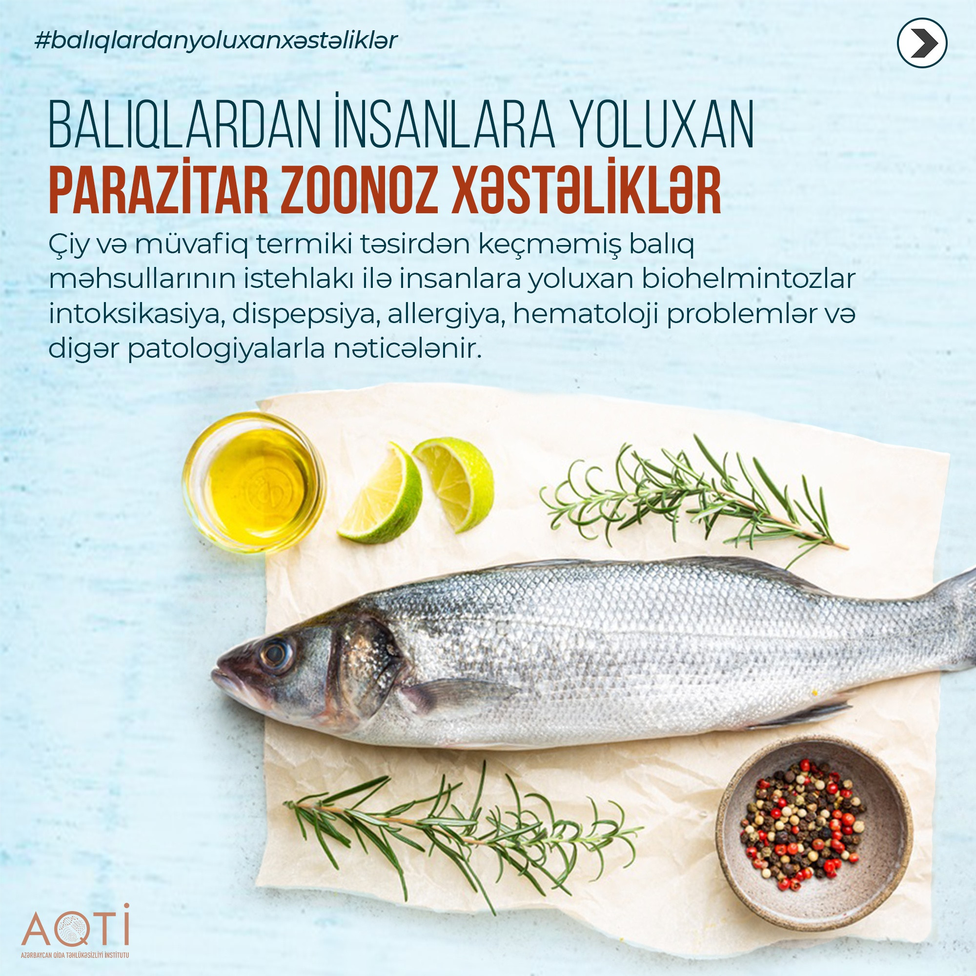 Azərbaycan Qida Təhlükəsizliyi İnstitutu balıqlardan insanlara yoluxan parazitar zoonoz xəstəliklər barədə məlumat yayıb.