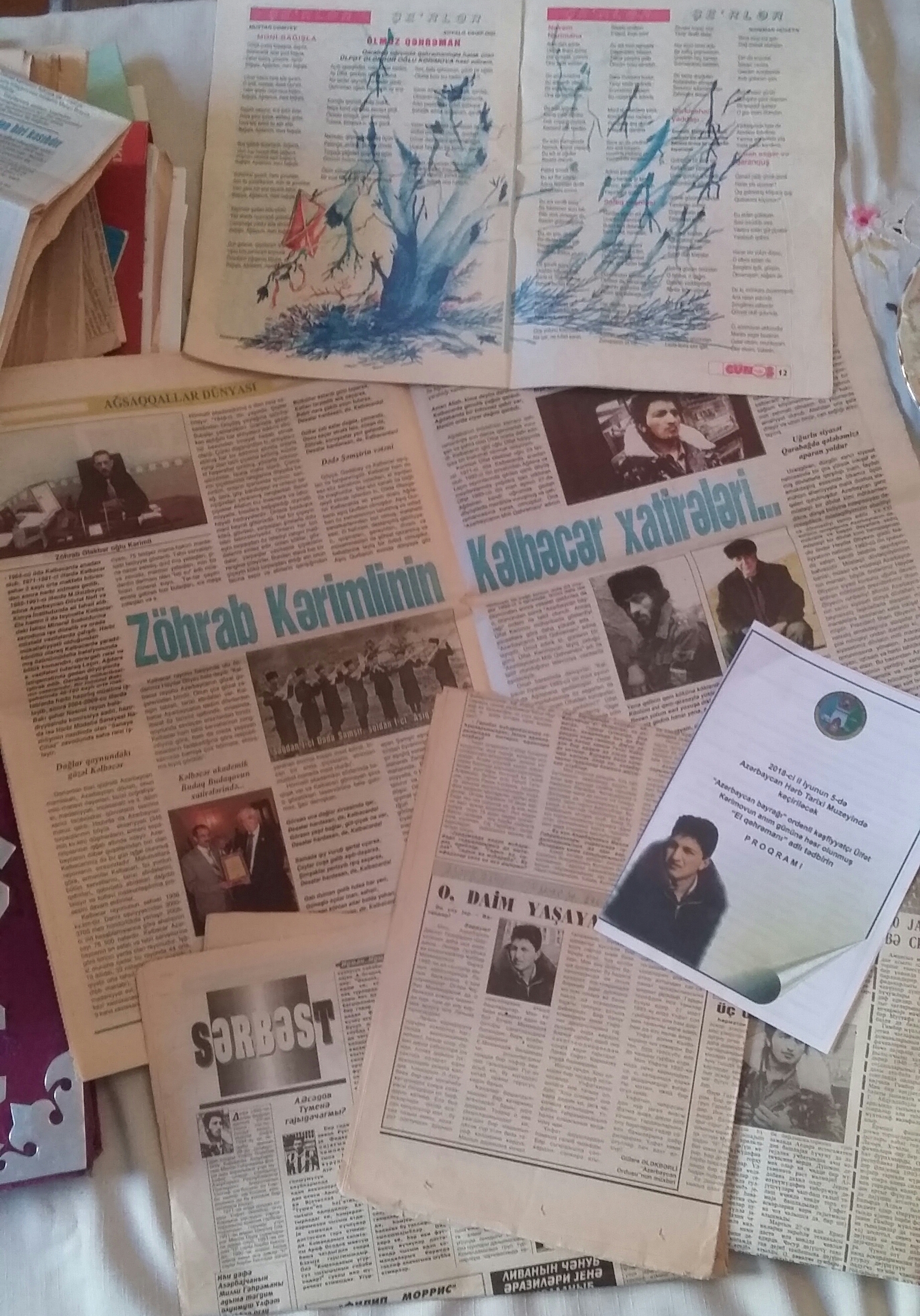 Ortaya Ülfətin Taqanroqda öz əlləri ilə düzəltdiyi məxmər üzlüklü, tünd bənövşəyi rəngli albom gəlir. Vaxtilə böyük şücaətlər, qəhrəmanlıqlar göstərmiş bir igidin əlləri, nəfəsi toxunan alboma əl vurmağa utanıram. Özümü bir vətəndaş kimi həmin alboma, bu albom sahibinin xatirələrinə nə qədər, hansı dərəcədə layiq olub-olmadığımı düşünürəm. Bu dəfə Xuraman xanım, uzun illərdən bəri, Kəlbəcərin işğalından sonra qaçaqaçda, qovhaqovda ləyaqətlə, həsrətlə qoruduğu albomun vərəqlərini çevirir: