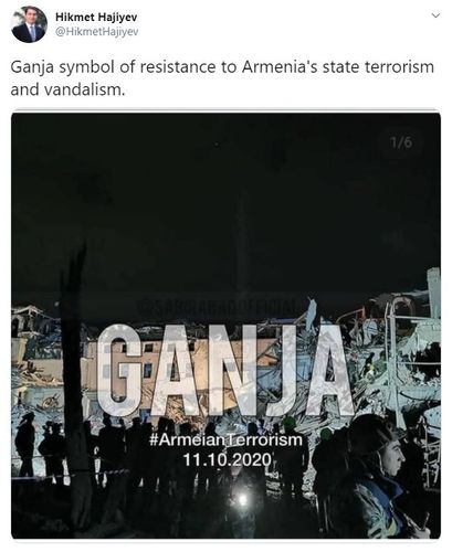 "Gəncə Ermənistanın dövlət terroru və vandalizminə müqavimət rəmizidir".
