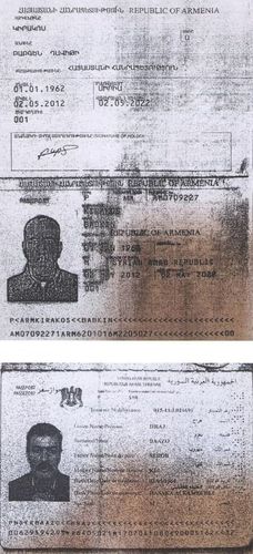 əmçinin, 02.05.1964-cü il təvəllüdlü, Suriya vətəndaşı, Suriyanın Haseke bölgəsinin sakini Baazo Hraj Sepob (pasport: 015-11-L021693), 12.11.1969-cu il təvəllüdlü, Suriya vətəndaşı, Suriyanın Hələb şəhərinin sakini İskandarian Hartion Avadis (Pasport: 004-11-L128622) və 01.01.1962-ci ildə Suriyada anadan olmuş, Ermənistan vətəndaşı Kirakos Babkin (pasport: AM 0709227) adına verilmiş pasportların kserosurətləri də aşkarlanıb.