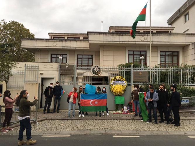 Diasporla İş üzrə Dövlət Komitəsindən Lent.az-a verilən məlumata görə, işğalçı Ermənistan ordusu tərəfindən Gəncə şəhərinin raket atəşinə tutulmasına etiraz edən həmvətənlərimiz səfirliyin və konsulluqların binaları qarşısına həlak olan uşaqların şəkilləri, Azərbaycan baraqları, güllər və oyuncaqlar düzür, şamlar yandırırlar. Soydaşlarımızın yazdıqları etiraz qeydində deyilir: “Sizin uşaqlığınız ata-ananız və oyuncaqlarla keçməli idi. Erməni faşizminin raket atəşləri altında yox…”.