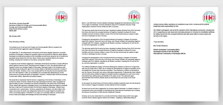Böyük Britaniyada yaşayan azərbaycanlı icması ölkənin xarici işlər naziri Dominik Raaba müraciət edib.
