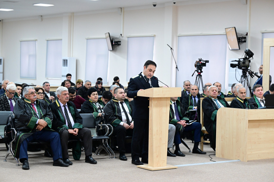 Məhkəmə prosesi dövlət ittihamını müdafiə edən prokurorlar tərəfindən cinayət işi üzrə ittiham aktının nəticəvi hissəsinin elanı ilə davam etdirilib.