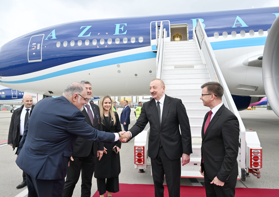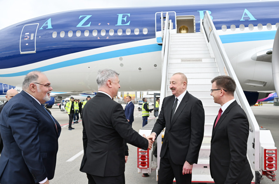 Azərbaycan Prezidentini Macarıstanın Avropa İttifaqı məsələləri üzrə naziri Yanoş Boka və digər rəsmi şəxslər qarşılayıblar.