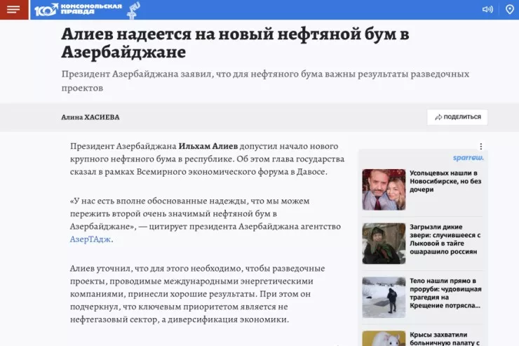 Bir sıra mətbu orqanları isə Azərbaycan Prezidentinin “Azərbaycan rəhbərliyi ilə səhər yeməyi“ adlı tədbirdə söylədiklərinə, xüsusilə Azərbaycan neftinin gələcəyinə dair fikirlərinə diqqət ayırıblar. “mk.ru“, “vesti.ru“, “life.ru“, “Komsomolskaya pravda“, “Vzqlyad“ kimi portal və qəzetlərdə Prezident İlham Əliyevin Azərbaycanda ikinci neft bumunun baş verə biləcəyinə dair fikri manşetə çıxarılıb. Qeyd edilib ki, qaz hasilatının artması fonunda hazırda ölkə “qara qızıl”ın hasilatını azaldır. Lakin neft hasilatını sabitləşdirmək, hətta artırmaqla bağlı planlar var.