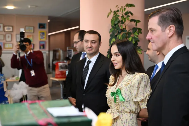 Əvvəlcə Leyla Əliyeva məktəblilərin ətraf mühit problemlərinə, onun həlli yollarına, təbiətin qorunmasına dair ideyalarını əks etdirən əl işlərindən ibarət sərgiyə baxış keçirib.