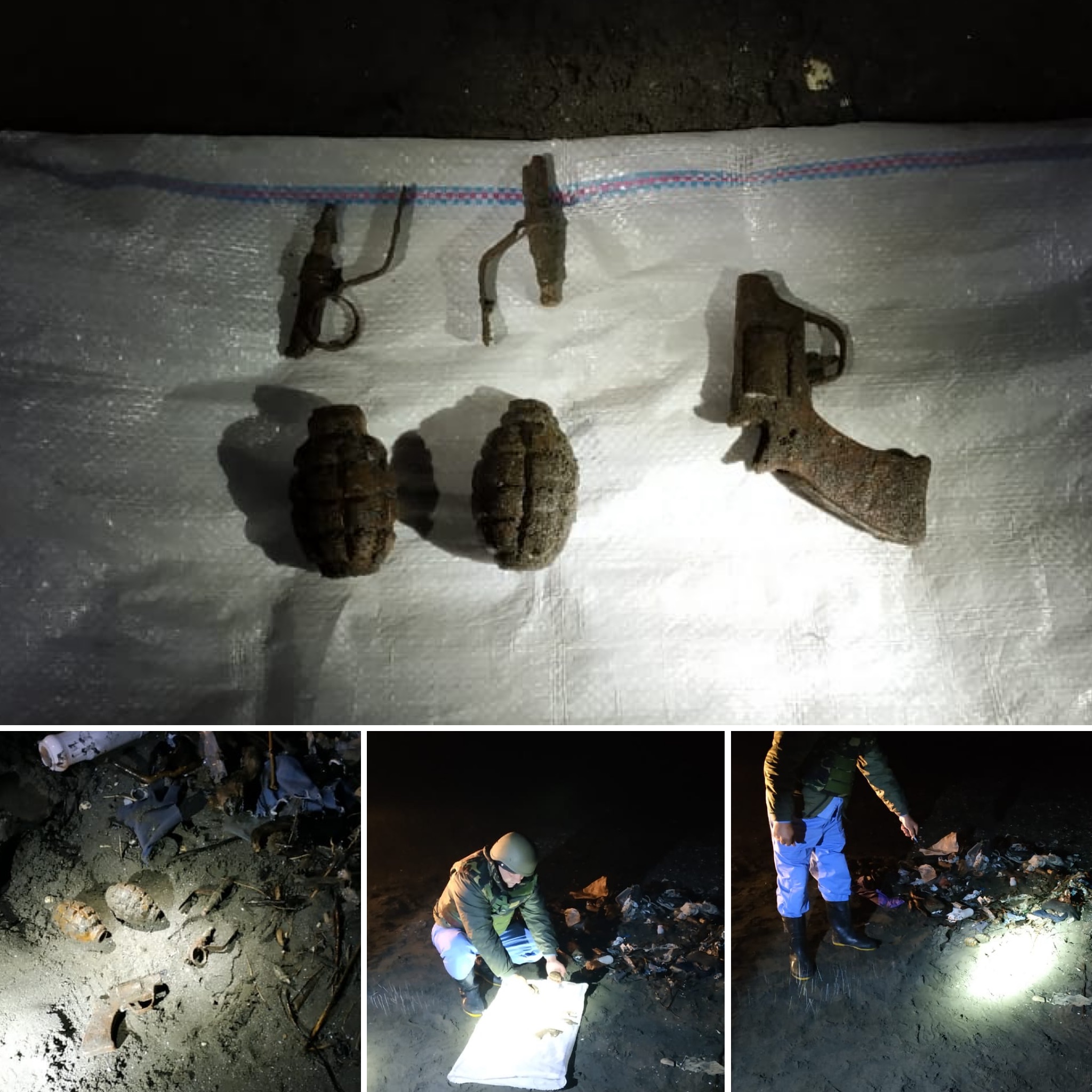 Agentliyin mütəxəssisləri və Sahil Mühafizəninəməkdaşları tərəfindən yuxarıda adı qeyd olunmuş ərazidə dəniz sahilinə baxış keçirilib. Təhlükəsizliyi təmin etmək məqsədilə ərazi Sahil Mühafizənin əməkdaşları tərəfindən mühafizəyə alınıb. Agentliyin mütəxəssisləri tərəfindən aparılan təcili təxirəsalınmaz əməliyyat-axtarış tədbirləri nəticəsində 2 ədəd F-1 əl qumbarası, 2 ədəd UZRQM partladıcısı və 1 ədəd korroziyaya uğramış tapança aşkar olunub, zərərsizləşdirilməsi üçün götürülərək Agentliyin mərkəzi məhvetmə ərazisinə daşınıb.