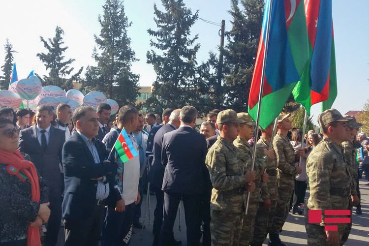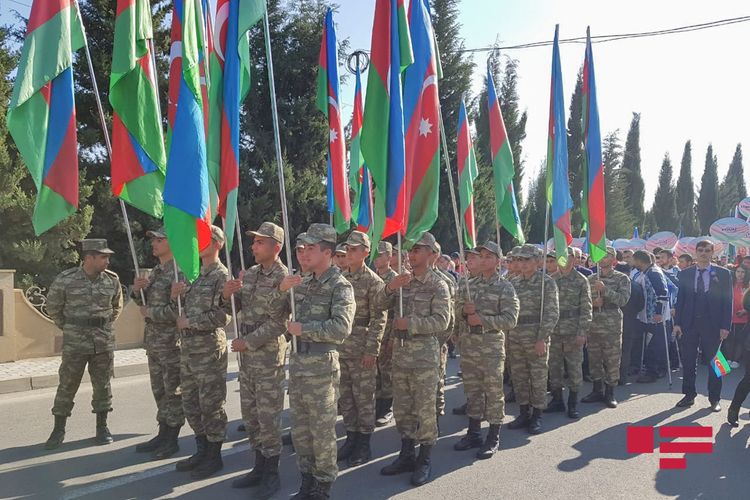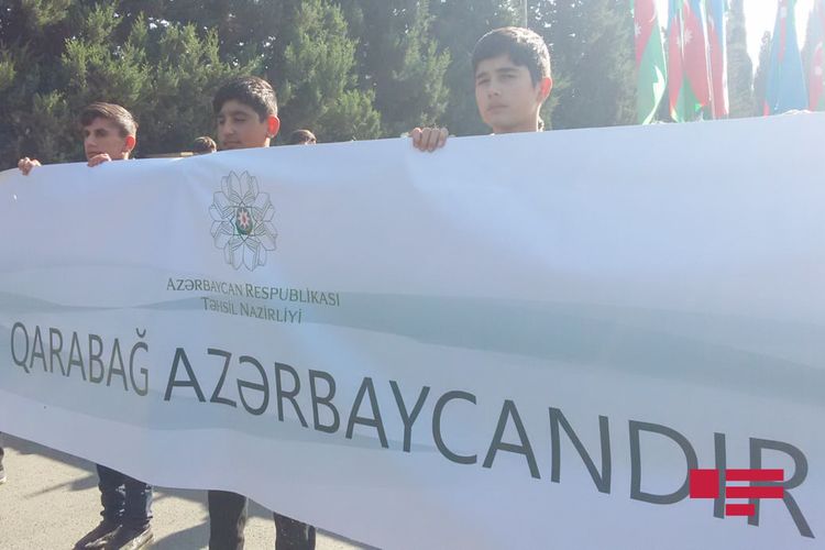Təhsil və müdafiə nazirlikləri Ağdam rayonunun Quzanlı qəsəbəsində 9 noyabr - Azərbaycanın Dövlət Bayrağı Günü münasibəti ilə “Bayraq yürüşü” keçirirdi.