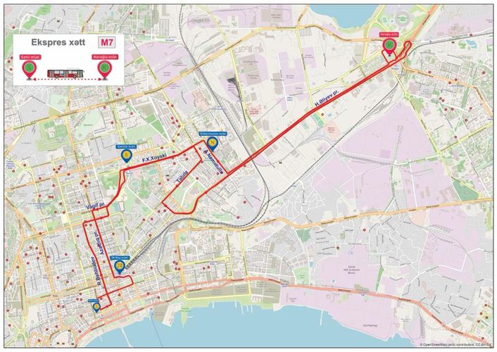 - M7 ekspress xətlər üzrə avtobuslar tam yeni hərəkət sxemi ilə fəaliyyət göstərəcək. Bu xətt üzrə avtobuslar Heydər Əliyev prospektindən keçməklə “Sahil” m/st və “Koroğlu” m/st-nı əlaqələndirəcək.