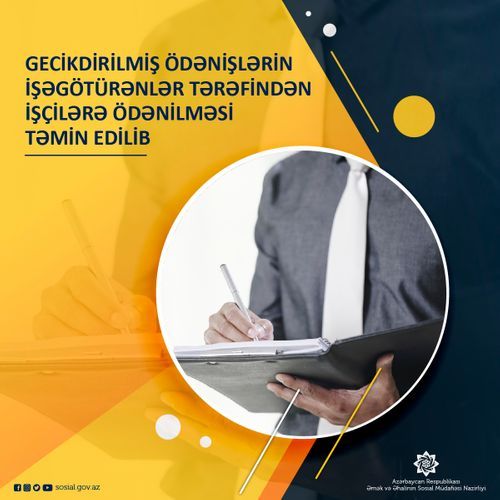 Əmək və Əhalinin Sosial Müdafiəsi Nazirliyi yanında Dövlət Əmək Müfəttişliyi Xidməti tərəfindən yanvar-sentyabr aylarında vətəndaş müracətlərinin araşdırılması zamanı işəgötürənlər tərəfindən 180 min manata yaxın məbləğdə sosial xarakterli ödənişlərin işçilərə ödənilməsinin gecikdirildiyi müəyyən olunub.