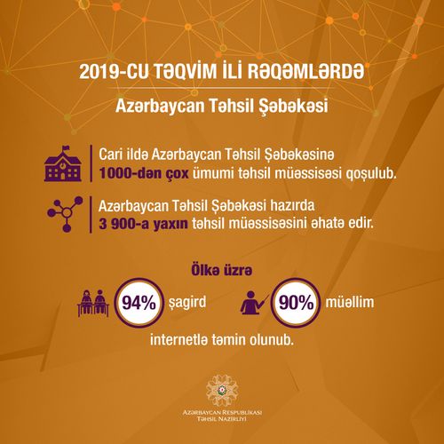 2019-cu ildə Azərbaycan Təhsil Şəbəkəsinə 1000-dən çox ümumi təhsil müəssisəsi qoşulub.