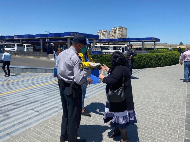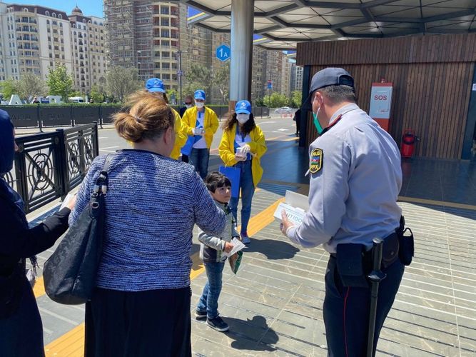BNA-dan Lent.az-a verilən məlumata görə, bu çərçivədə ilk tədbir “Koroğlu” Nəqliyyat Mübadilə Mərkəzində keçirilib. Yerli polis orqanının əməkdaşları və Nəqliyyat könüllüləri maskadan istifadə etməyən vətəndaşlara tibbi maskalar paylayıb, maarifləndirici söhbətlər aparıb və sanitar rejimin tələblərini izah ediblər. İnsanlarla təmas zamanı iki metrlik məsafənin qorunması və tibbi maskalardan istifadənin zəruri olduğu onların diqqətinə çatdırılıb.