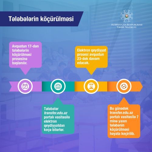 Avqustun 17-dən tələbələrin köçürülməsi prosesinə start veriləcək.