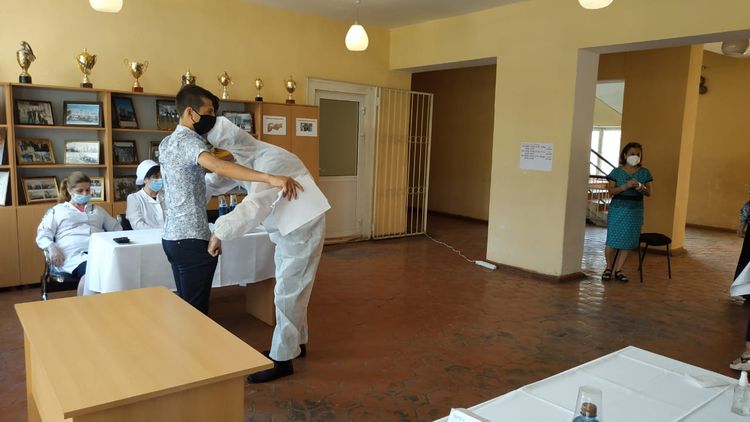 İmtahan binasına daxil olan iştirakçıların məsafədən ölçə bilən elektron termometrlə bədən hərarətləri yoxlanılıb, zəruri dezinfeksiyaedici vasitələrdən istifadə olunub. İmtahana gələn iştirakçıların bədən hərarətləri normaya uyğun olub.