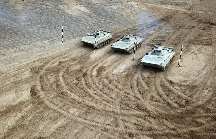 Piyadaların döyüş maşınları da təlimlərə qoşulub.