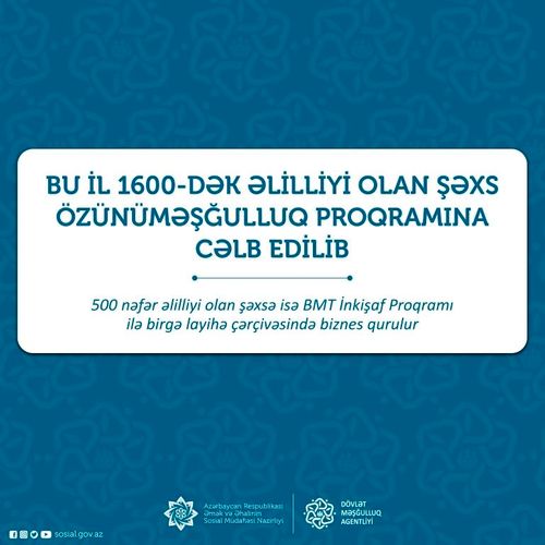 Bu ilin ötən dövründə Əmək və Əhalinin Sosial Müdafiəsi Nazirliyinin tabeliyindəki Dövlət Məşğulluq Agentliyi tərəfindən 1600-dək əlilliyi olan şəxs həmin proqrama cəlb olunub.