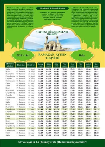 Qafqaz Müsəlmanları İdarəsindən Lent.az-a verilən məlumata görə, təqvimdə Ramazan ayının namaz vaxtları, imsak və iftar vaxtları əks olunub.
