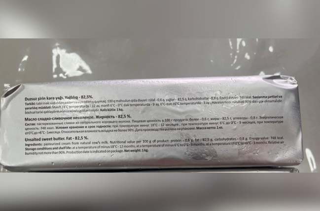 Azərbaycan Qida Təhlükəsizliyi Agentliyindən Lent.az-a verilən xəbərə görə, nümunələrin sınaq nəticələrinə əsasən, kərə yağı adı ilə satılan məhsul partiyalarında bitki sterinləri − “Kampesterin” və “Beta-sitosterin” (bitki yağı) ilə yanaşı, yağ turşuları üzrə də uyğunsuzluq (Palmitin, Olein yağ turşuları) aşkarlanıb.