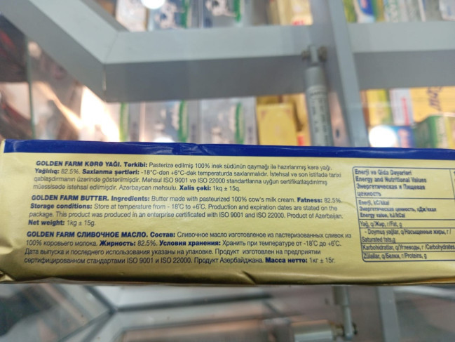 “Golden Farm” əmtəə nişanlı 82,5% yağlılıqda kərə yağı |