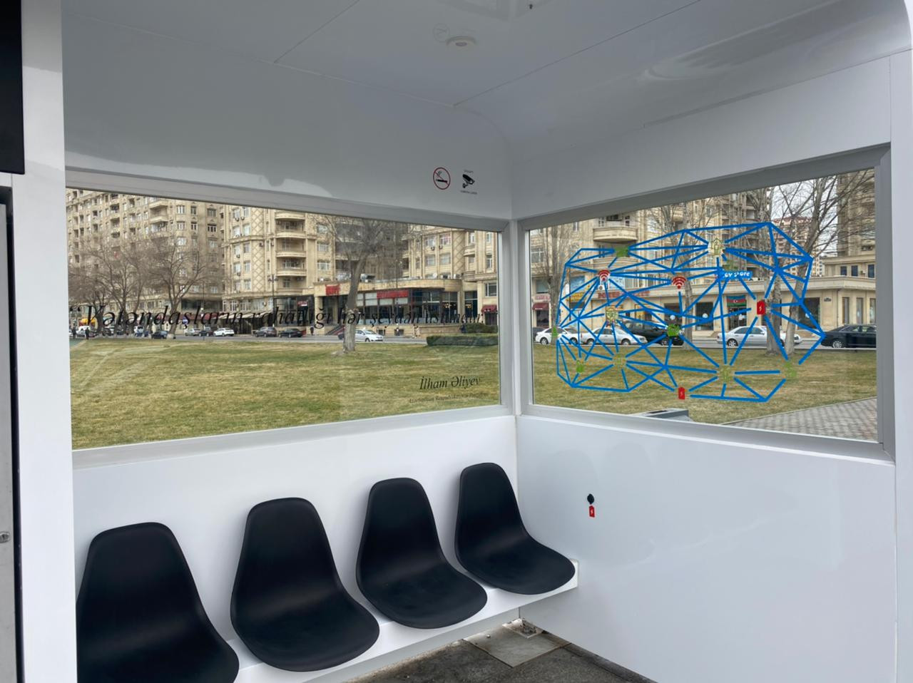 Tamamilə yerli istehsal olan bio-smart avtobus dayanacaq pavilyonunun bir çox üstünlükləri var. Pavilyon günəş enerjisi ilə çalışır. Burada dezinfeksiya duşu quraşdılıb ki, bunun sayəsində də müəyyən olunan vaxt aralığında avtomat rejimdə dərman məhlulu səpilir. Mobil qurğular üçün enerji portlarının olduğu pavilyonda “BakıKart” ödəmə terminalı da var.