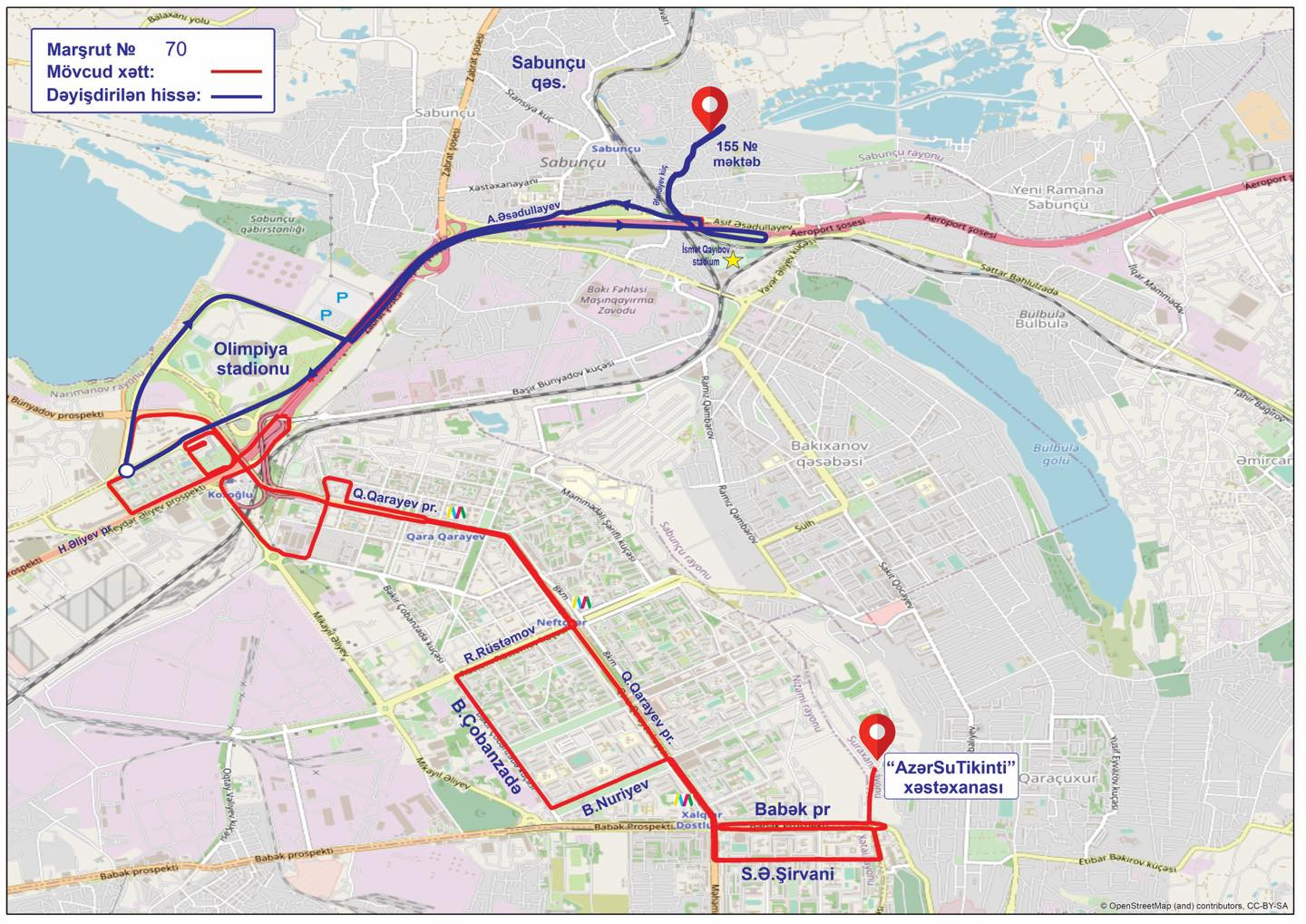 70 saylı müntəzəm marşrut xətti üzrə avtobusların hərəkət sxemində dəyişiklik edilib.
