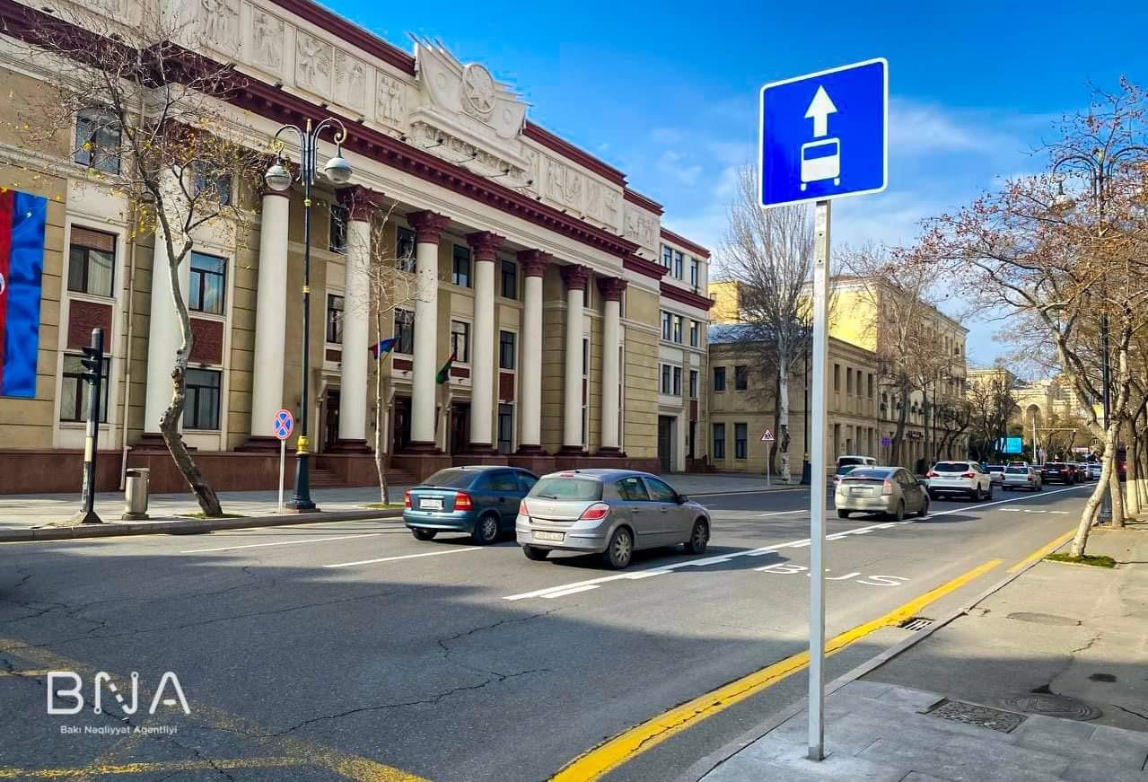 Daha bir küçədə xüsusi avtobus zolağının təşkili işləri yekunlaşıb.