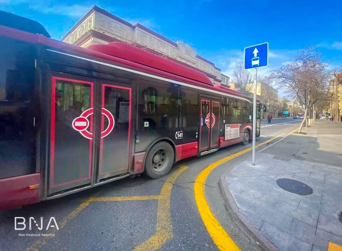 "Sürücülərdən xahiş edirik ki, qeyd olunan küçədə xüsusi avtobus zolaqlarının və yol nişanının tələbinə əməl etsinlər.