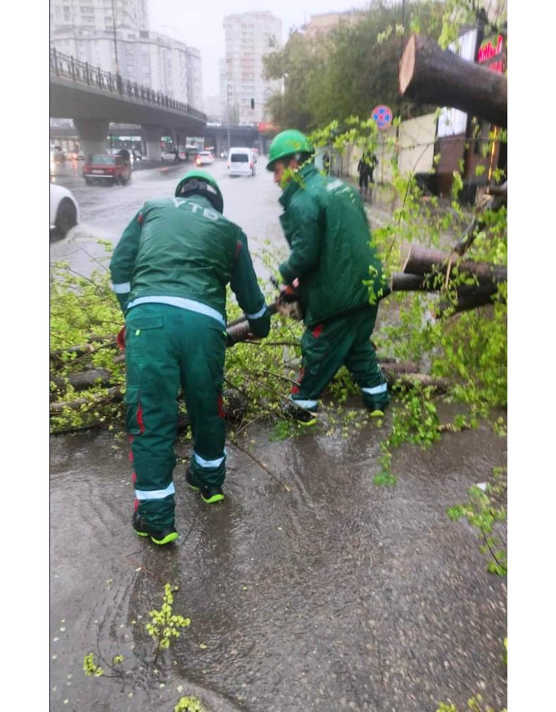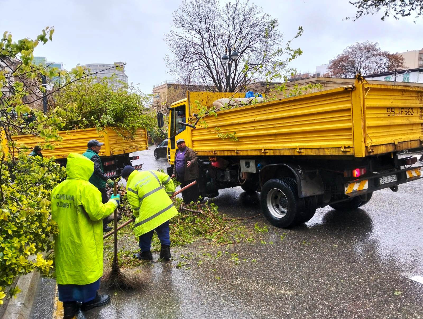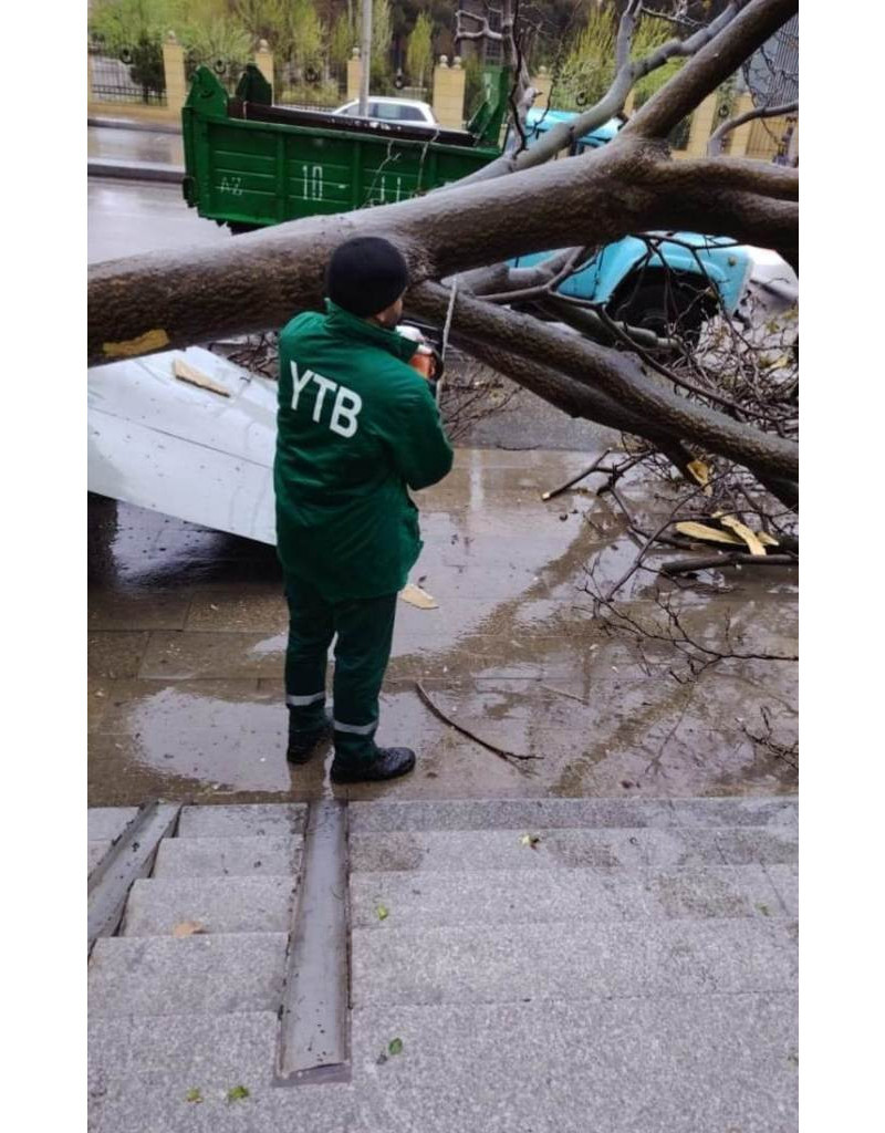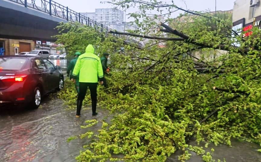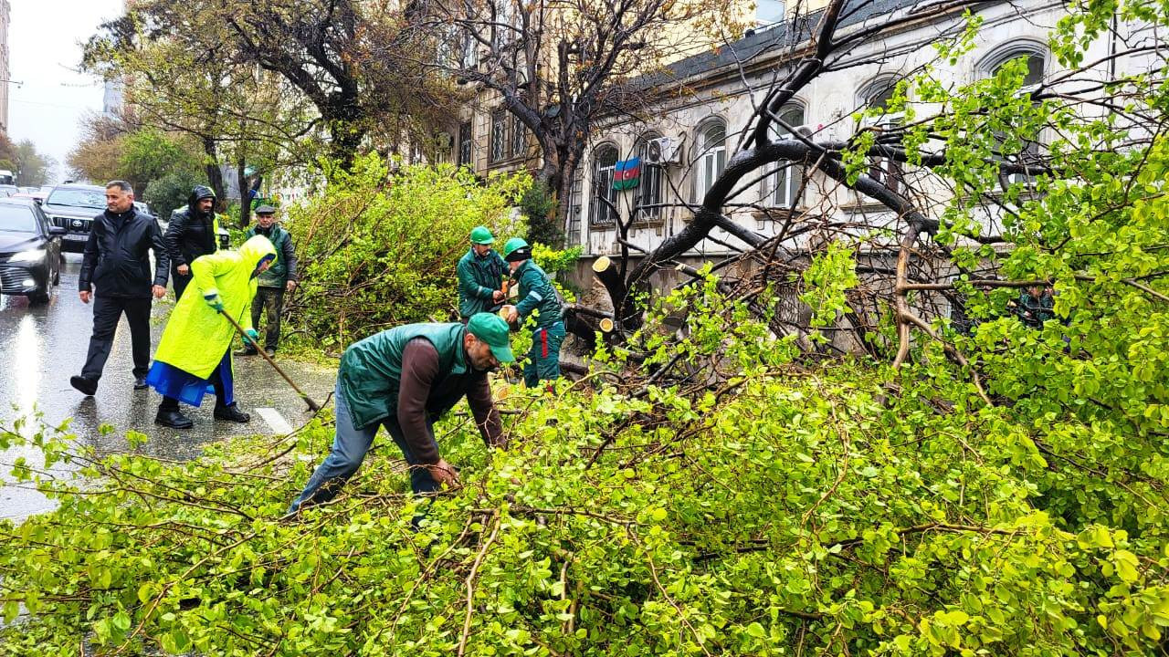 Birliyinin əməkdaşları tərəfindən qırılan ağaclar kəsilib, zədələnənlər budanıb, ərazi təmizlənib.