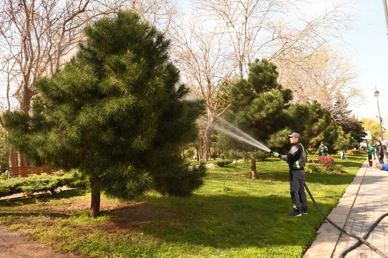 Bildirilib ki, aprelin 19-da Bakı şəhər kommunal xidmətləri tərəfindən paytaxtda aparılan genişmiqyaslı təmizlik işləri çərçivəsində küçə və yol kənarlarına, həyət və məhəllələrə yayılan tozun təmizlənməsi, mövcud yaşıllıqlara qulluq göstərilməsi həyata keçirilib.