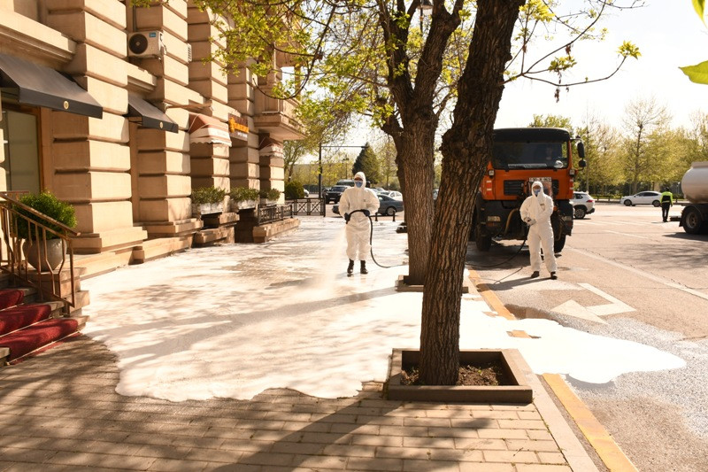Səhər saatlarından etibarən Bakı Şəhər İcra Hakimiyyətinin kommunal təsərrüfat xidmətlərinin texnikası tərəfindən şəhərin 550 əsas küçə, prospekt və məhəllədaxili yolların yuyucu maddələrlə yuyulması təmin edilib və eyni zamanda genişmiqyaslı təmizlik və abadlıq işləri həyata keçirilib.