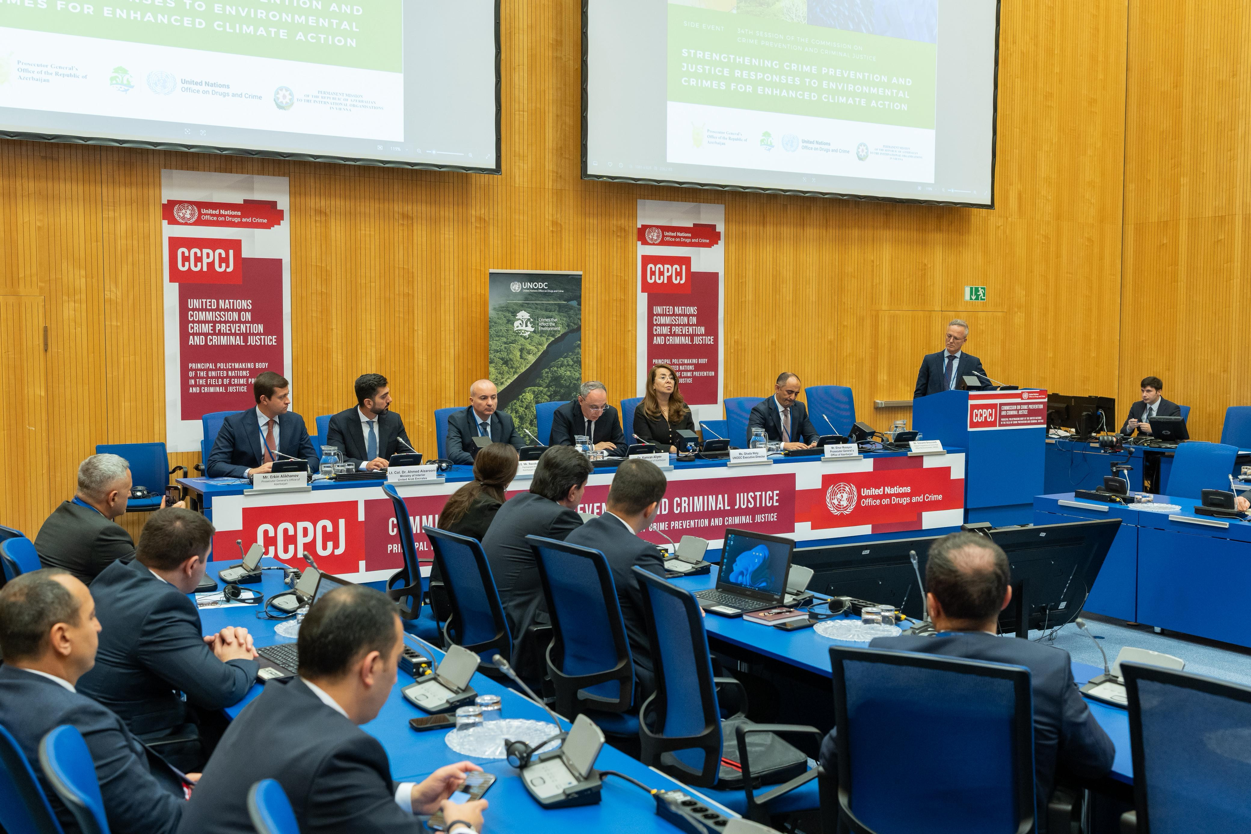 Lent.az xəbər verir ki, Baş Prokurorluq və BMT-nin Narkotiklər və Cinayətkarlıq üzrə İdarəsi (BMTNCİ) arasında əldə olunmuş razılığa əsasən ölkəmizin COP29-da sədrliyi çərçivəsində əldə etdiyi nailiyyətlərin beynəlxalq ictimaiyyətə təqdim olunması məqsədilə Azərbaycanın Avstriyadakı Səfirliyinin dəstəyi ilə BMT-nin qərargahında “İqlim fəaliyyətinin təkmilləşdirilməsi üçün ətraf mühit cinayətlərinə qarşı cinayətin qarşısının alınmasının və ədalət mexanizmlərinin gücləndirilməsi” adlı xüsusi sessiya təşkil edilib.