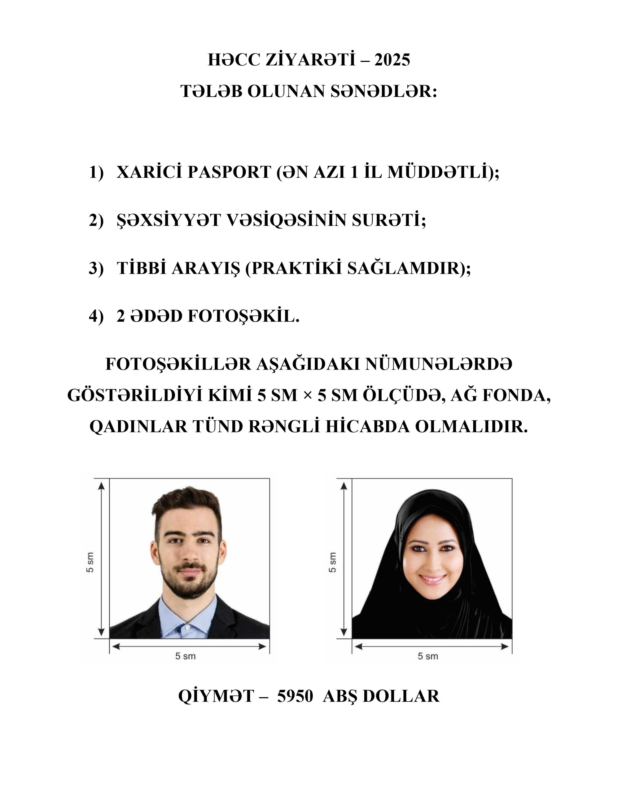Bir nəfər üçün ziyarət paketinin qiyməti 5950 ABŞ dolları təşkil edir. Ziyarət vahid formada təşkil olunacaq və hava nəqliyyatı ilə ilə həyata keçiriləcək.