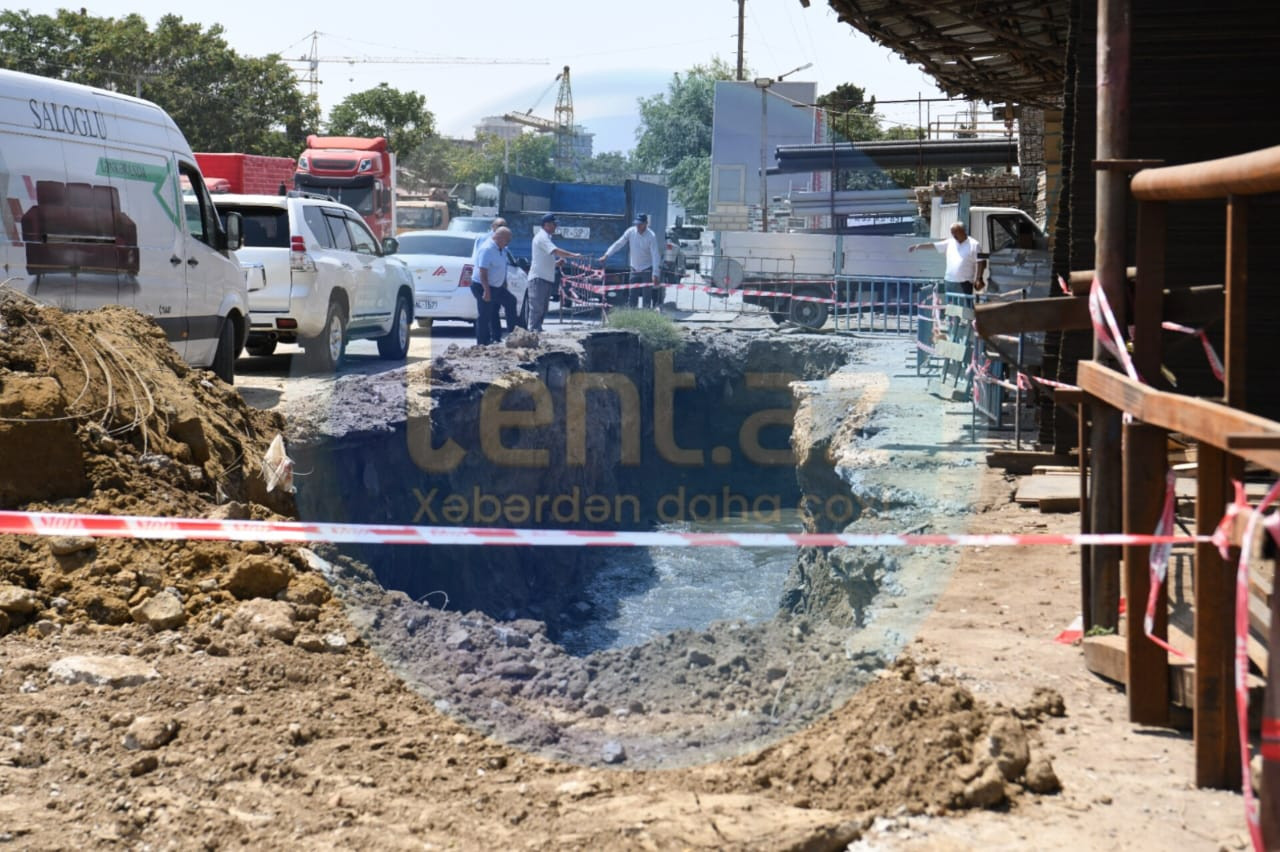 Əvvəlcə İri Şəhərlərin Birləşmiş Su Təchizatı Xidmətinin əməkdaşlarına yaxınlaşıb, hadisə barədə məlumat aldıq. Məsul qurumun işçisi bildirdi ki, kollektorun üzərində çökmə baş verəndə, onlar həmin riskli ərazini çəpərləyib, gediblər.
