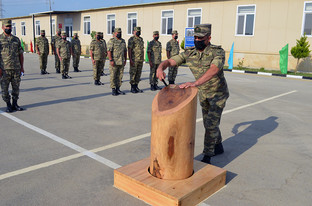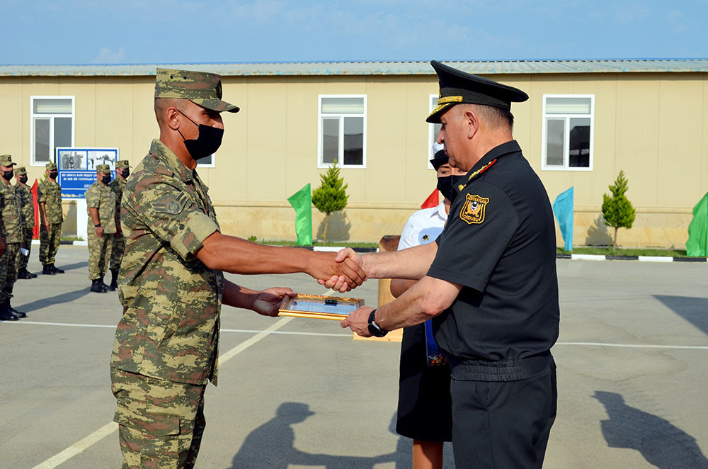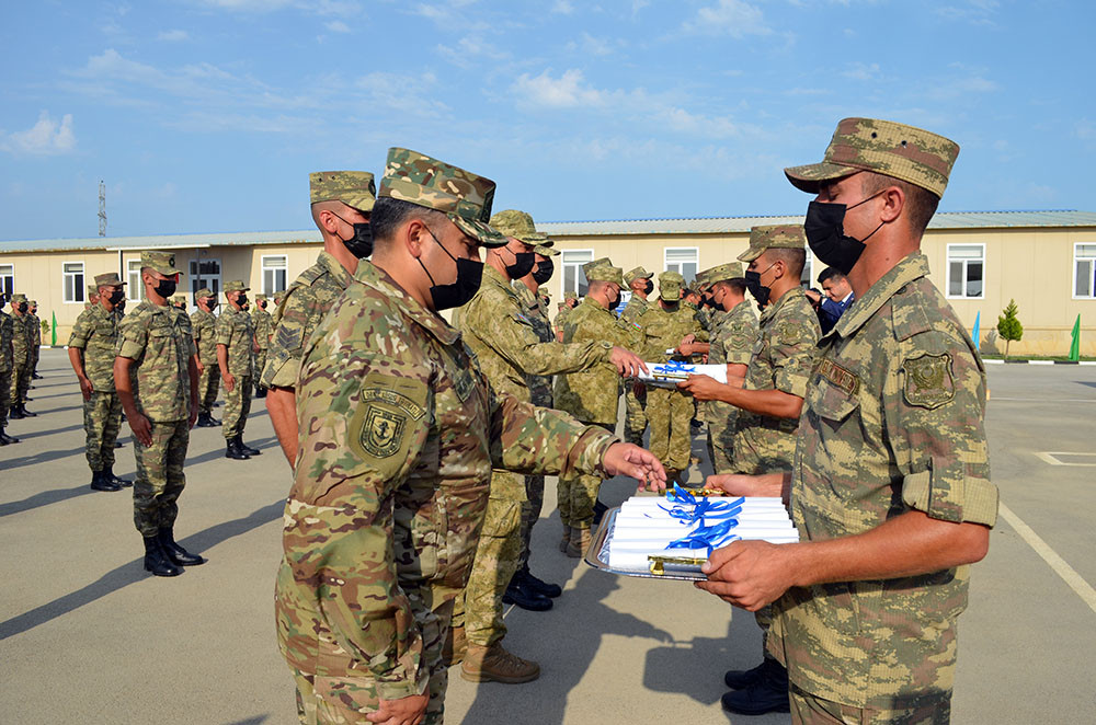 Sonra kurs birincisi tərəfindən rəmzi yaş kötüyünə emblem vurulub və məzunlara sertifikatlar təqdim edilib. Kursda fərqlənən hərbi qulluqçular və təlimatçılar fəxri fərman və qiymətli hədiyyələrlə mükafatlandırılıb.