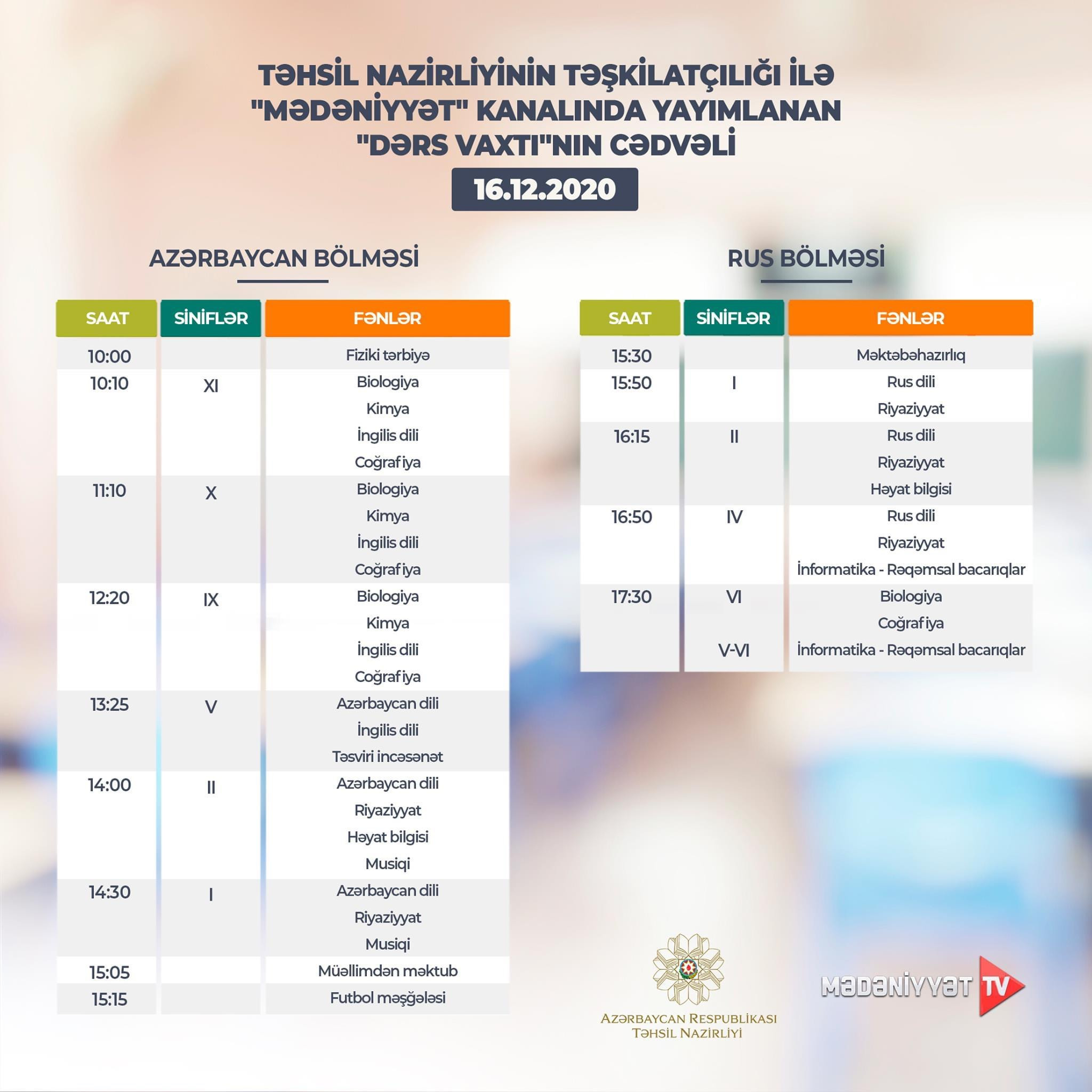 “Dərs vaxtı”nın bugünkü CƏDVƏLİ
