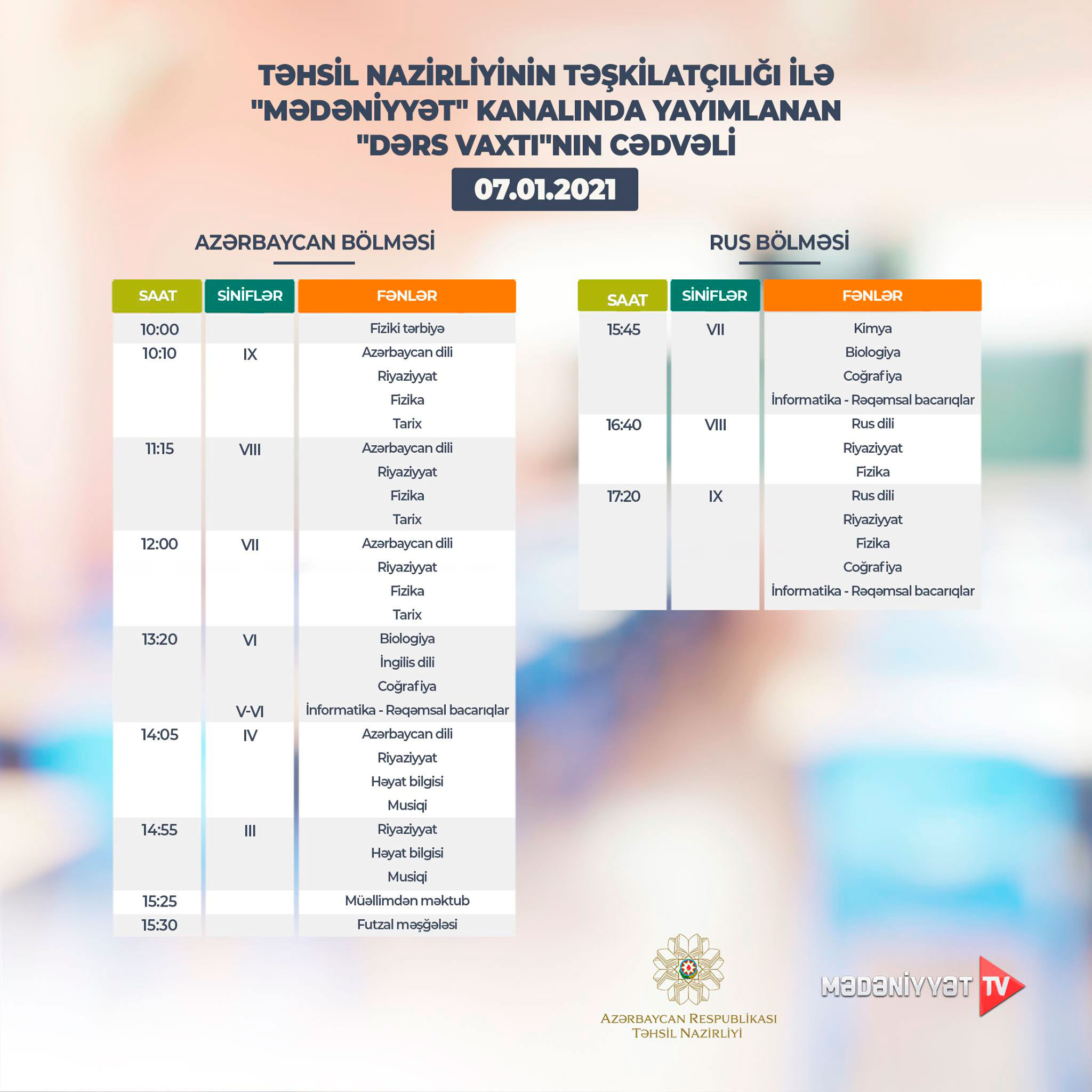 "Dərs vaxtı"nın bugünkü CƏDVƏLİ