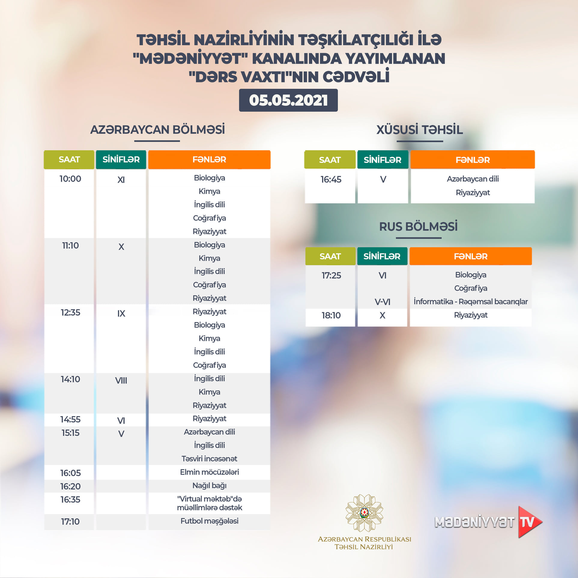 "Dərs vaxtı"nın bugünkü CƏDVƏLİ